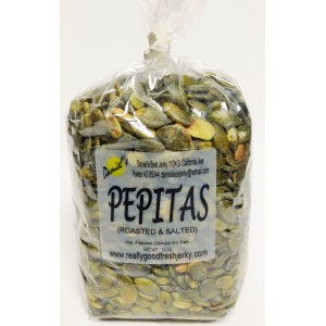 Pepitas are shelled pumpkin seeds, roasted and salted. These are a delicious, healthy snack full of nutrients!